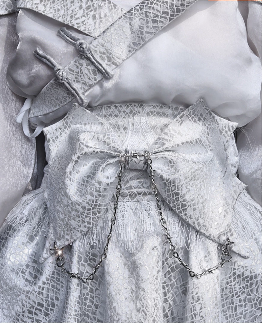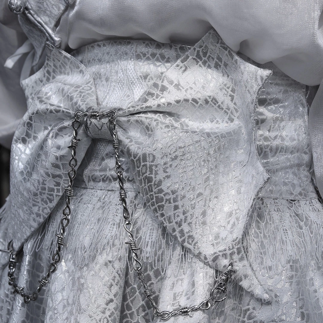 Three-piece set contains: top + lace belt (without bowknot) + skirt