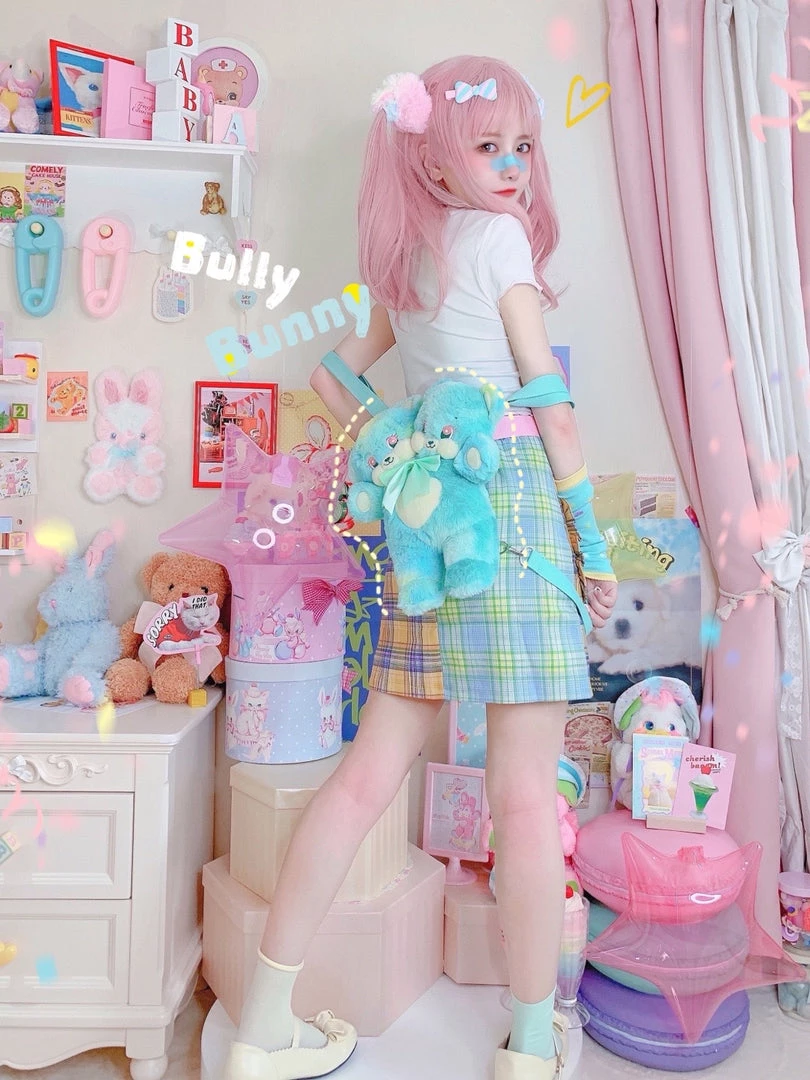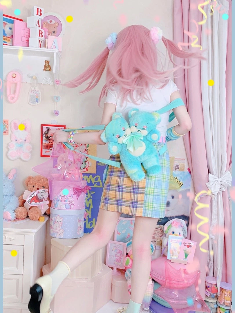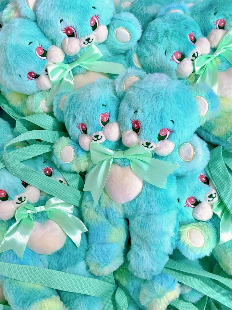 Each plush is colored with the random color combination of yellow, blue, and green. Therefore each plush has unique colors on the front and backside.