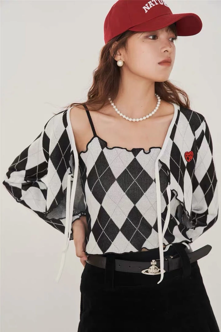 Size: Vest bust: 72-88cm stretchable, cardigan bust: 80-88cm, sleeve length: 54cm, cardigan length: 38cm, vest length: 43cm
