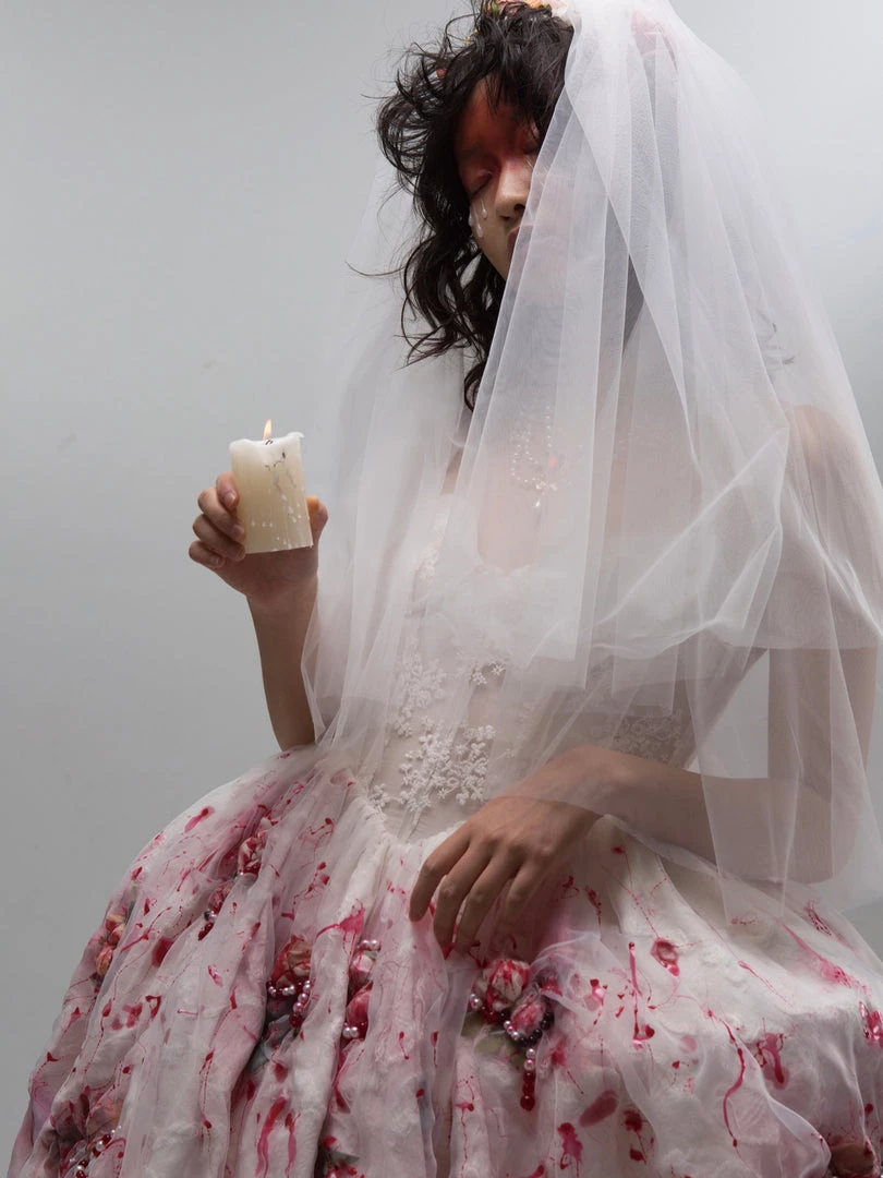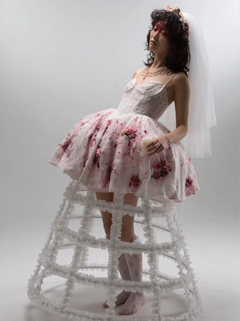 We are thrilled to announce the official cooperation with Runway designer Velvet for the future design collection. She is such a talented and passionate designer, and here are some photos of her graduation work for the runway stage – theme: Sick Bridal