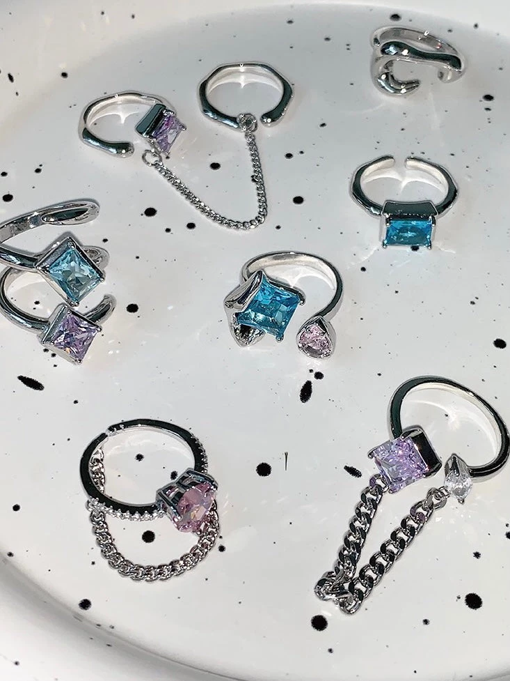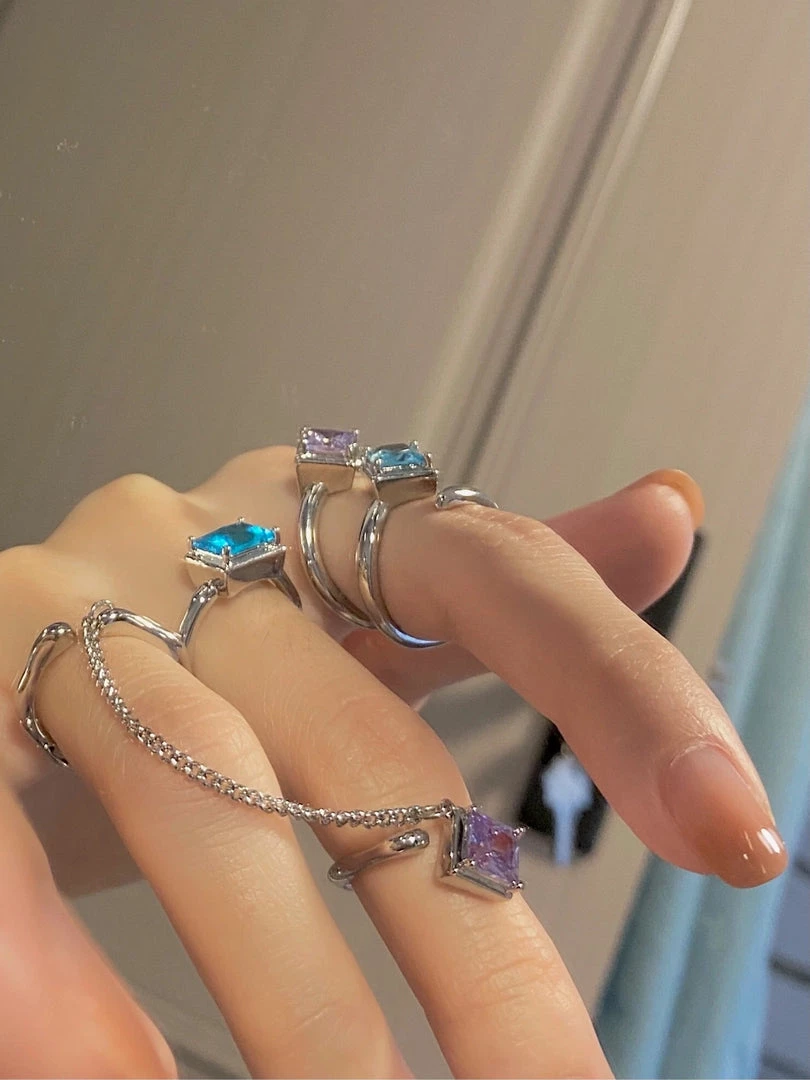 | Style | Purple Chain Ring, Blue single ring, Blue + lavender circle ring |