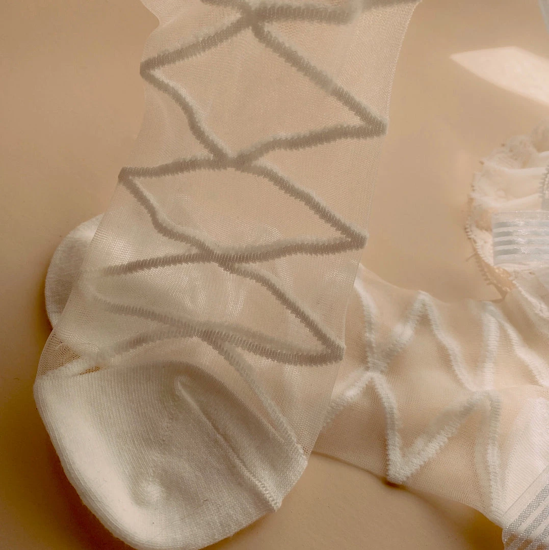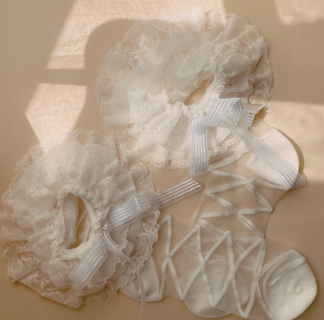 2 versions with handmade lace ballerina stocks and simple version of transparent socks decorated with white top