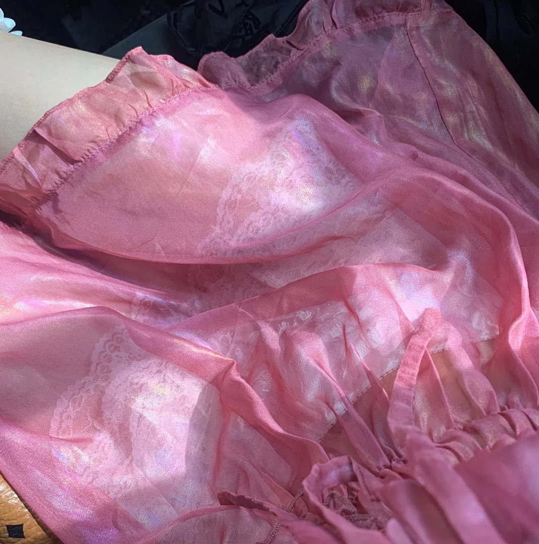 The dress fabric is very shine under the sun light