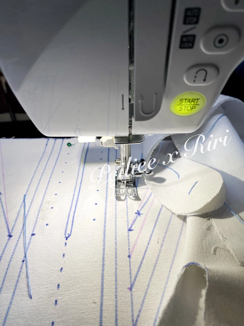 Sample made with white cotton fabric, the final version will be white Rose Patterned fabric