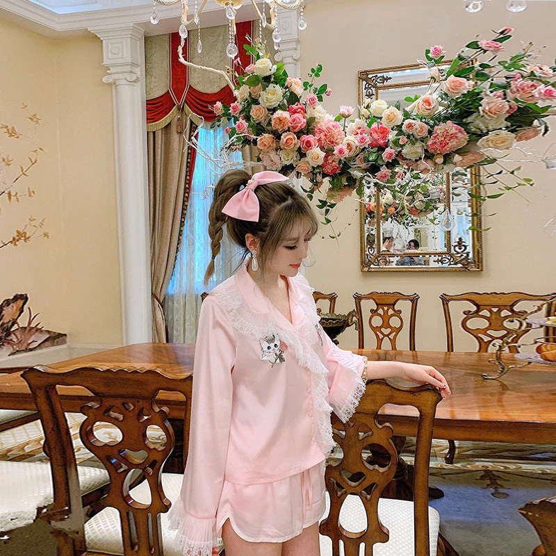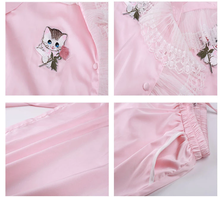 Sweet detailed sewed meow meow 🐈 embroidered pattern on soft and smooth vegan silk-like fabric.